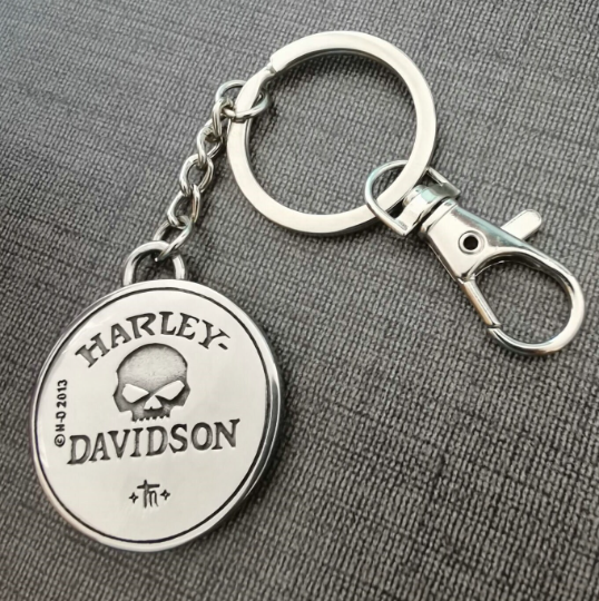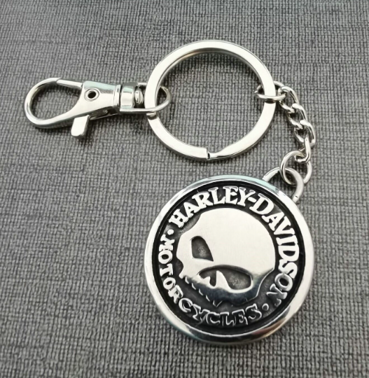 a distinctive accessory that showcases the rebellious spirit of the open road. This keychain features a unique dual-face design, each side adorned with a captivating motorcycle skull motif. Crafted with meticulous attention to detail, it’s more than just a keychain – it’s a compact expression of the untamed freedom that defines the world of Harley Davidson.