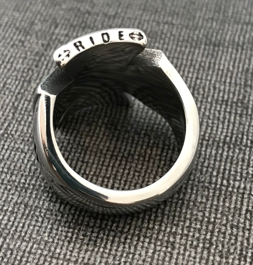 The cross design on this unisex ring symbolizes the intersection of spirituality and the thrill of the open road. It’s a subtle yet powerful statement that resonates with those who appreciate the deeper connections forged on their motorcycle journey.